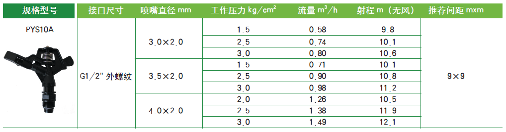 全圆喷洒式 不锈钢弹簧、不锈钢轴、其余部件用优质 POM 工程塑料,强度高,耐腐蚀,耐老化,使用寿命长。有多种快速连接方式,可作便携移动喷洒。配用多种喷嘴规格,可满足不同喷灌强度与喷洒半径的要求。